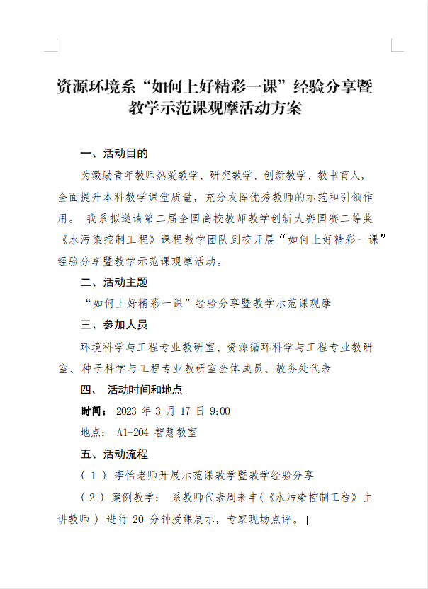 资源环境系关于开展“如何上好精彩一课”经验分享暨教学示范课观摩活动的通知