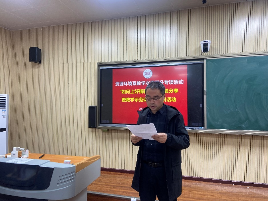 根据系本科教学工作评估“百日攻坚”工作安排,为进一步提升教师教学质量,3月17日上午,邀请第二届全国高校教师教学创新大赛国赛二等奖《水污染控制工程》课程教学团队(课程负责人李桂贤教授,主讲教师李怡老师)到校开展“如何上好精彩一课”经验分享暨教学示范课观摩活动。活动由系党总支书记、主任冯华仲主持,全体教职工参加。