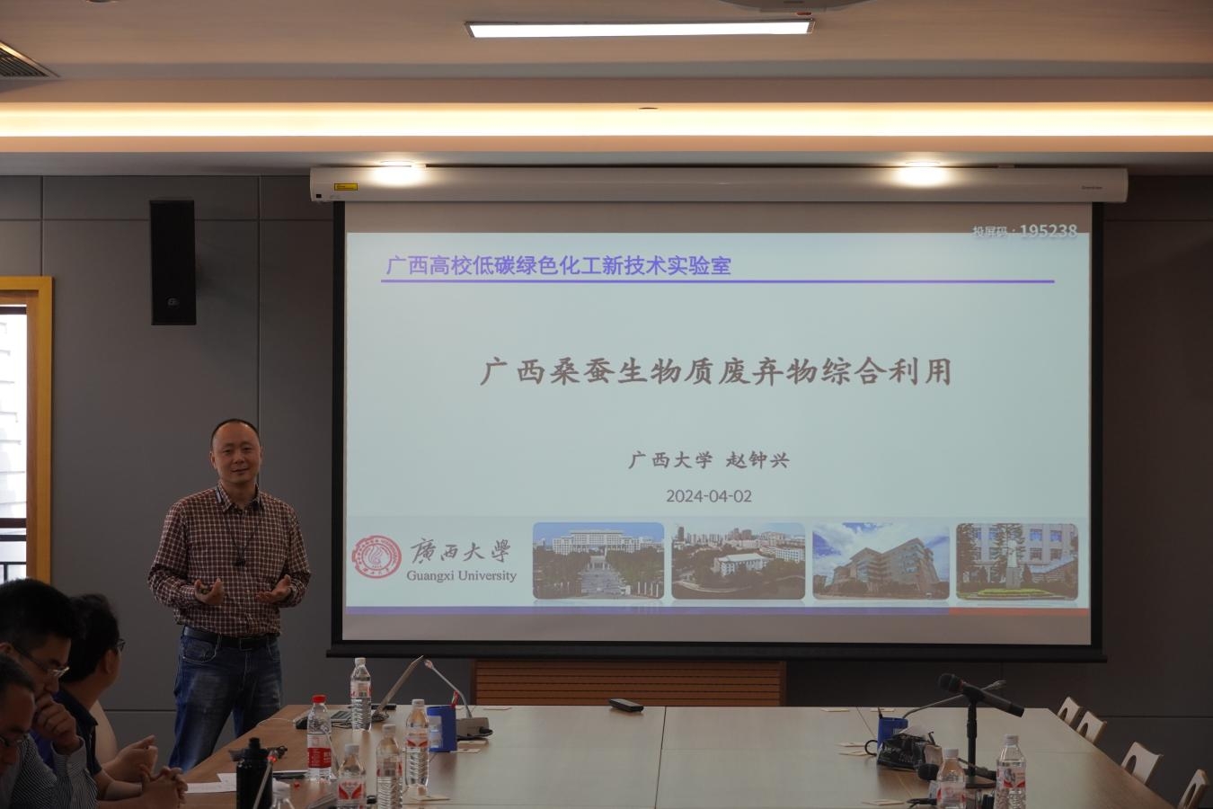 赵钟兴教授围绕广西桑蚕生物质废弃物综合利用,从桑蚕生物质废弃物基本介绍、桑蚕蛋白废弃物、桑蚕纤维废弃物的高值化应用进行了详细介绍;陈健民博士从MOF材料的研究背景讲起,围绕“MOFs衍生材料构建、光/电催化生物质/CO2机制研究”进行了主题分享。