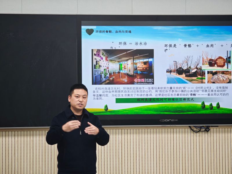 课堂上,同学们认真聆听,积极思考。张磊指出,当前生态文明建设进入纵深阶段,环保从“治标”迈向“治本”,需要更多具备创新思维与实践能力的青年力量参与。他鼓励资环学子以“知行合一”的态度,积极投身绿色产业,勇于破除思维定势和专业边界,在实践中不断成长为“懂技术、会管理、有担当”的新时代环保人才。