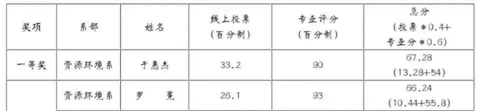 我系环境科学与工程183班团支书于惠杰同学最终获得一等奖,资源循环科学与工程192班团支书罗冕同学获得二等奖。