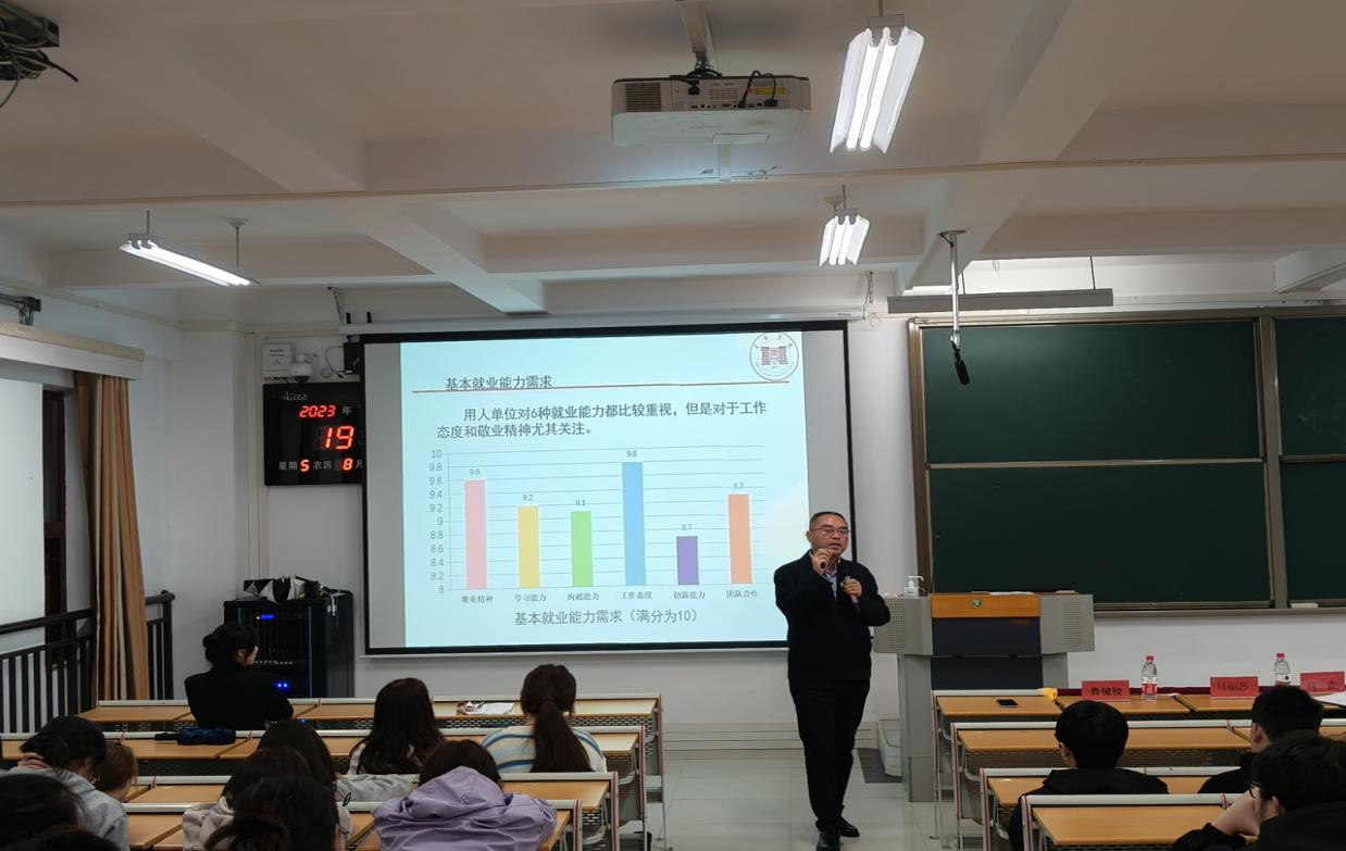 资源环境系党总支书记、主任冯华仲老师为同学们讲解了本系几个专业近年就业形势与方向,为毕业生积极准备就业指明了方向,同时对毕业生就业提出了几点建议,一是找准目标,一往无前;二是先就业,后择业;三是早就业,就好业。
