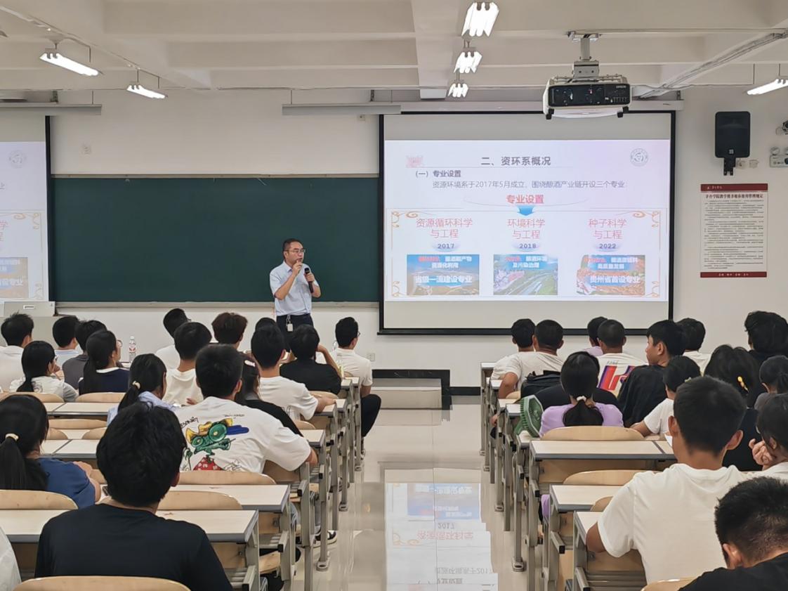 冯华仲老师作校情系情介绍,从学校专业设置、学生科研、师生服务地方、教学成效及优秀毕业生等方面进行了讲解,让学生快速熟悉学校和系部,鼓励大家向优秀同辈学习。