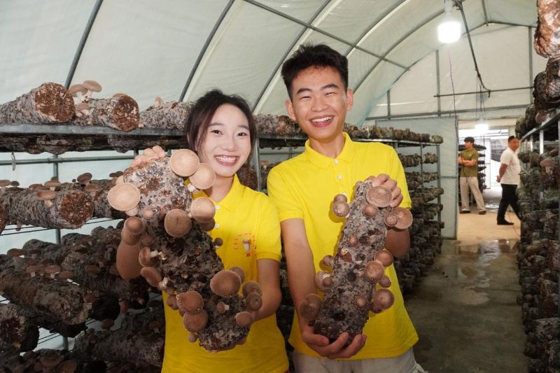 学生在菌菇种植基地调研
