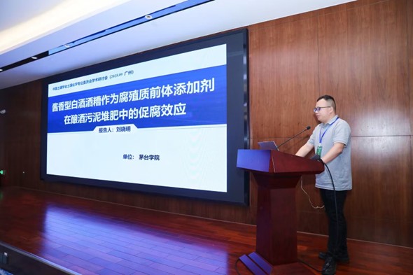 资源与环境学院刘晓明博士应邀参加“微纳米颗粒土壤化学行为与效应”专题,并作《酱香型白酒酒糟作为腐殖质前体添加剂在酿酒污泥堆肥中的促腐效应》专题报告。会上,刘晓明博士分享了酱香白酒废弃物现状和赤水河流域生态保护政策,探究了酱香白酒酒糟作为高温堆肥促腐剂的可行性,为酱香白酒有机固废原位资源化处置提供了新路径。