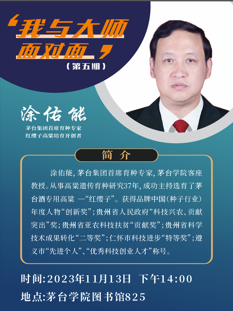 主讲人:涂佑能 茅台集团首席育种专家 红缨子高粱培育开创者