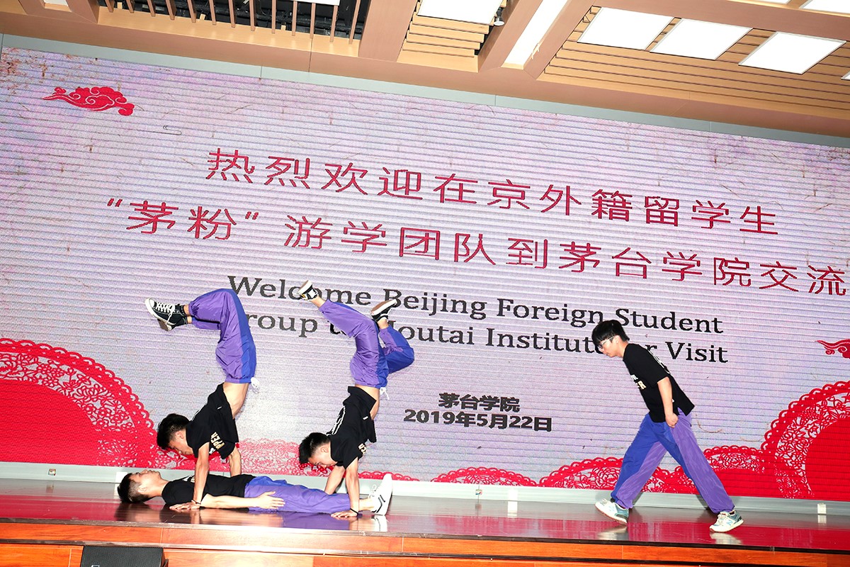 beat365正版唯一官网必一HR街舞社带来的一段“醉酒”舞蹈将现场气氛烘托得更加热烈。舞蹈结束后,舞者们举起酒杯,向远道而来的留学生们表示热烈的欢迎与真诚的感谢。