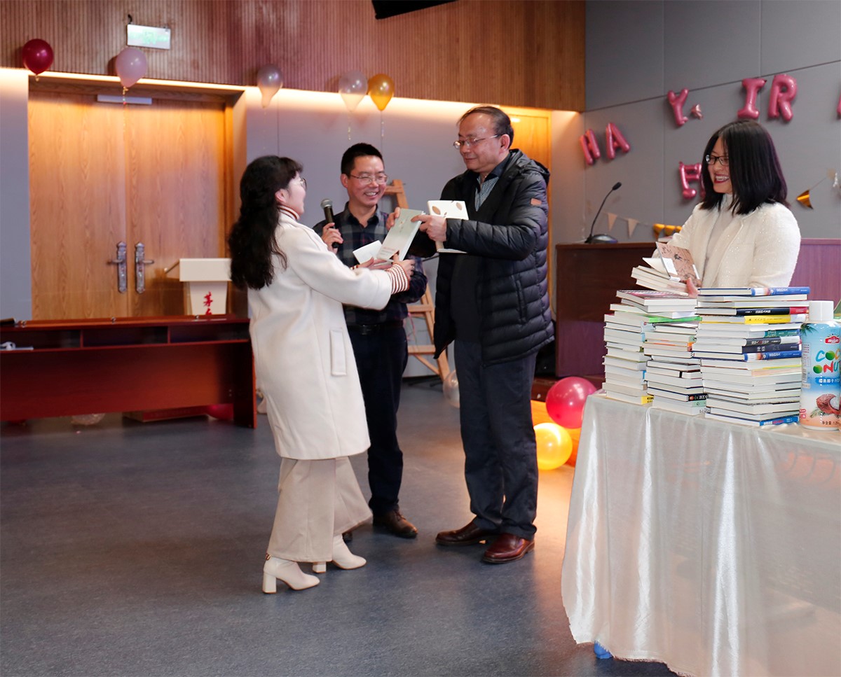活动为此次过生日的老师赠送书籍、分发生日蛋糕,泰戈尔诗集、社会契约论、走到人生边上等一本本读物精品在掌声中由王维欣、许厚强两位校领导郑重递送到老师们手上。