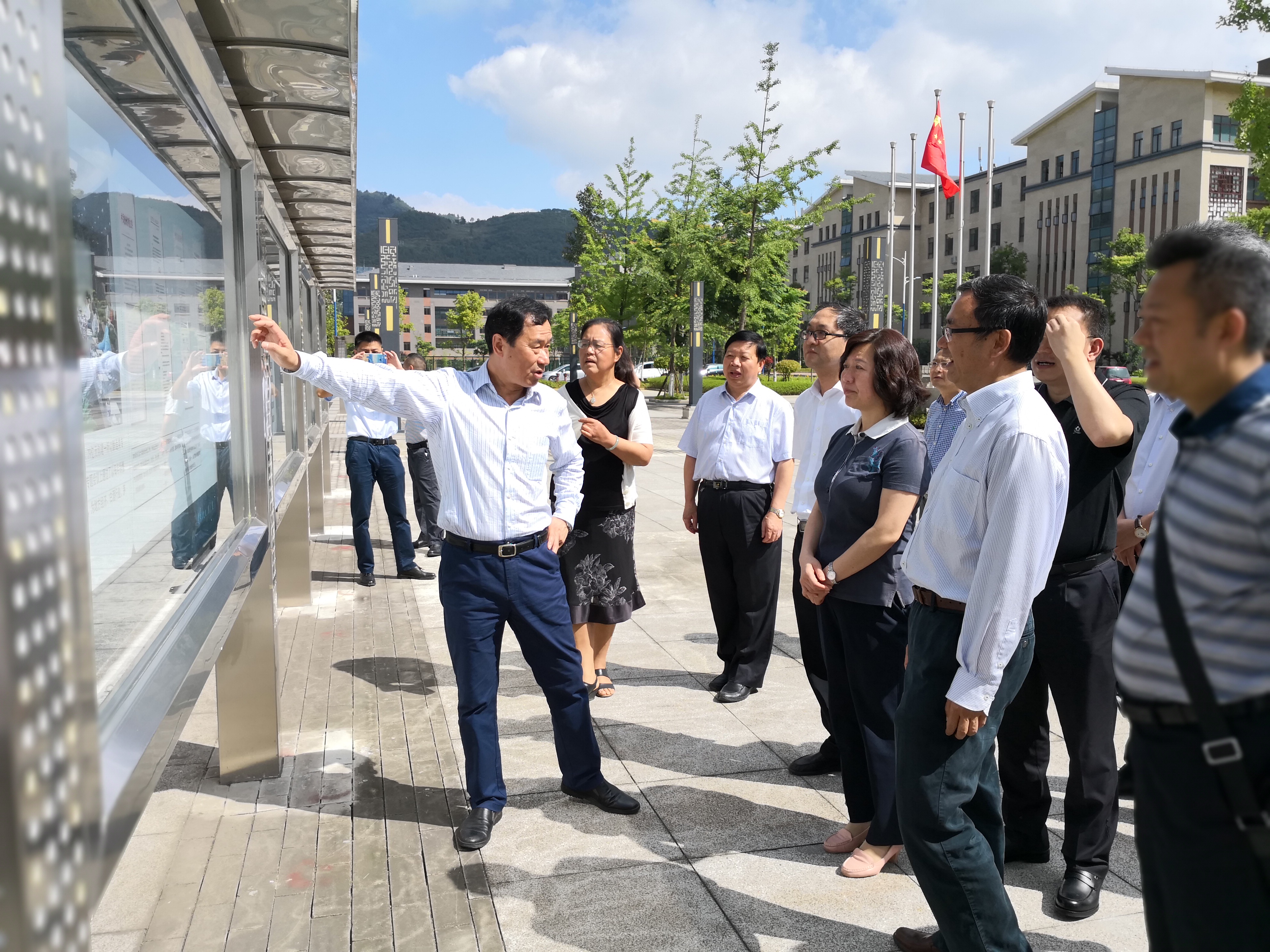 此前,调研组一行亲临学院“贵州省第一八三国家职业技能鉴定所”、专家公寓楼等地, 在学院酿酒工程自动化系主任兼“贵州省第一八三国家职业技能鉴定所”副所长王开建教授等人导引下,详细查看了解“维修电工技师技能教学实训”等有关情况,观看学院“5.23办学周年庆”宣传橱窗展板等。