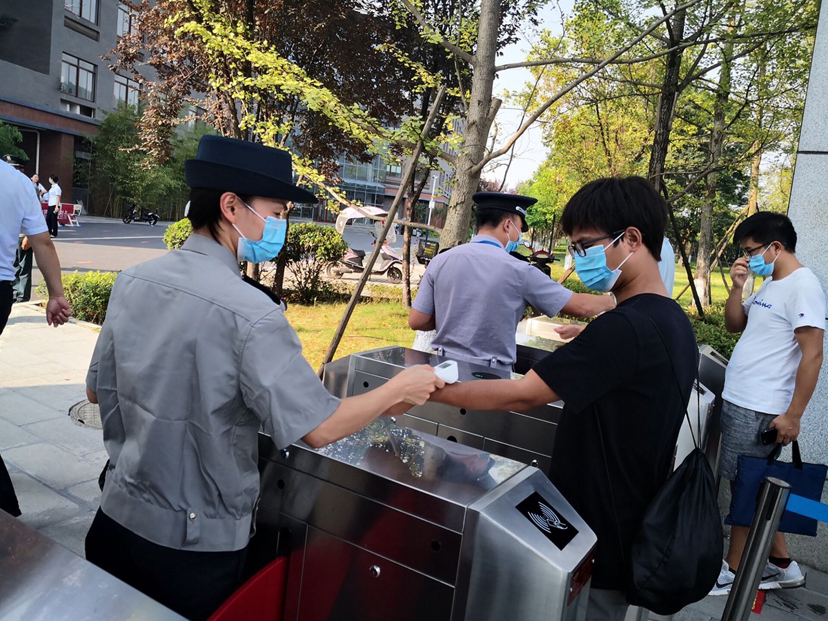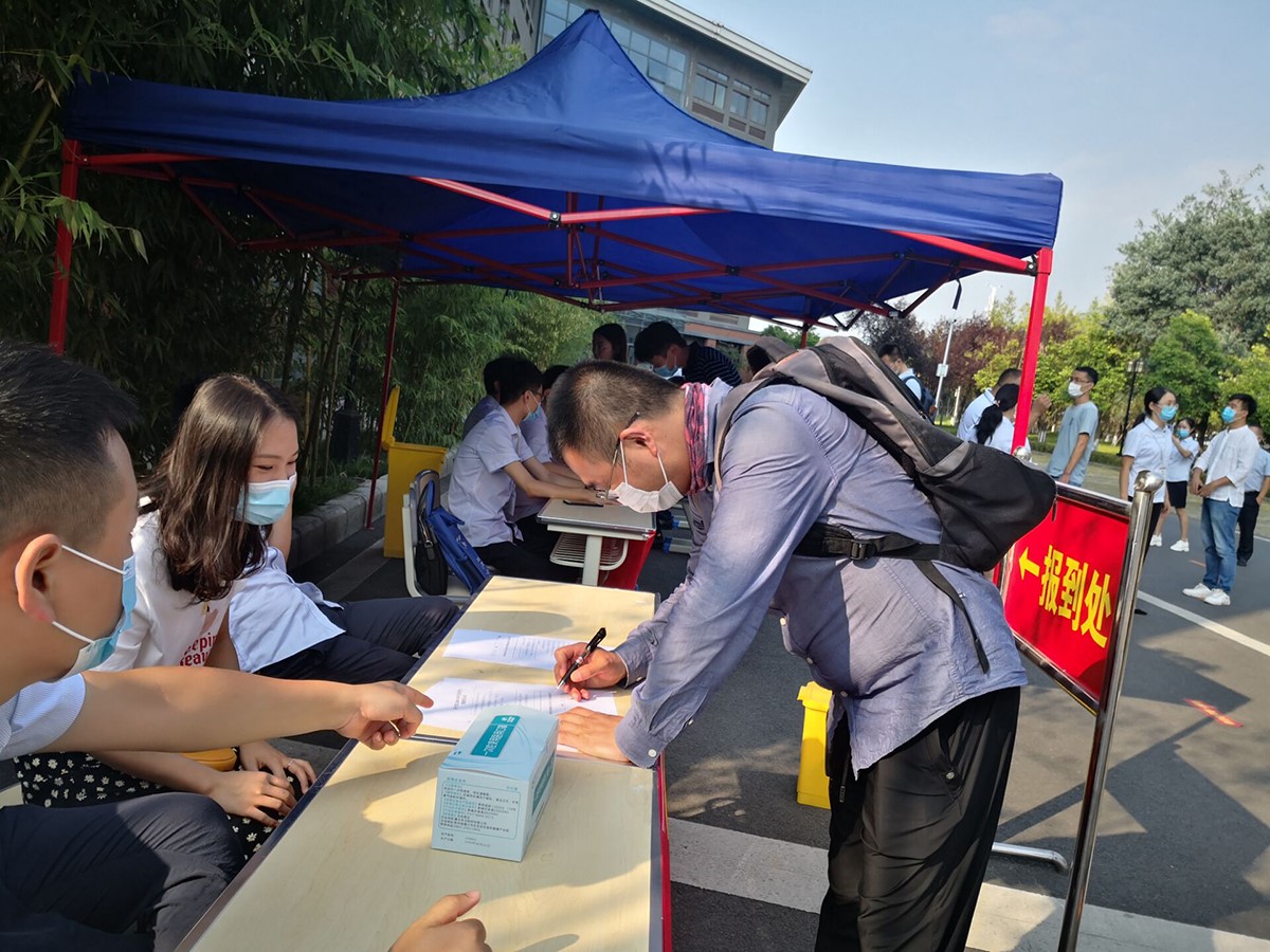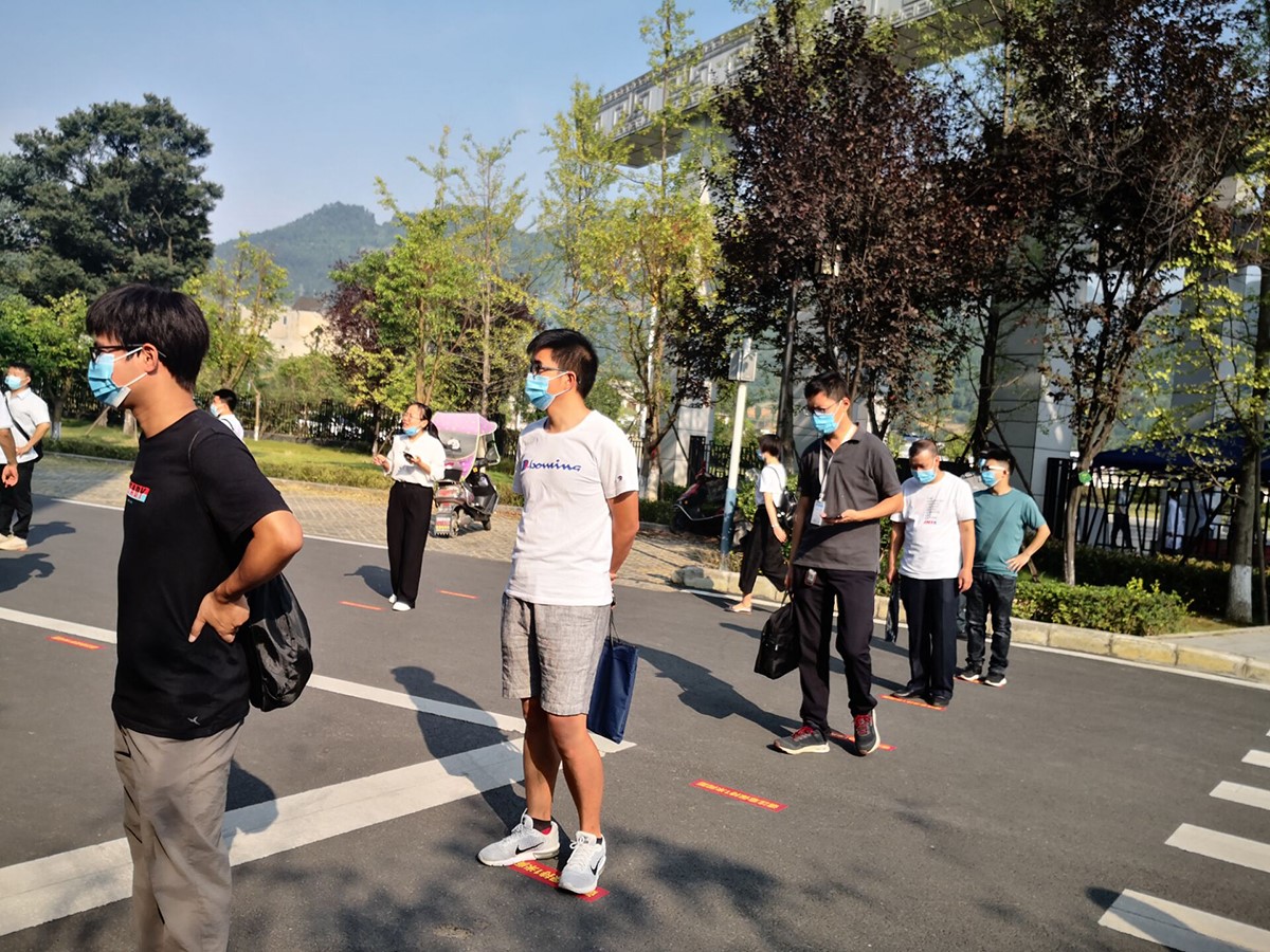 上午9时,参加演练人员在校门外排队,依序进行行李消杀、扫码、测量体温并登记。入校后,即分别到宿舍、教室、食堂等地,就宿舍出入、上课秩序及堂食就餐等关键节点疫情防控进行演练。结束后遂即总结应急演练过程中存在的问题和不足并提出整改要求。
