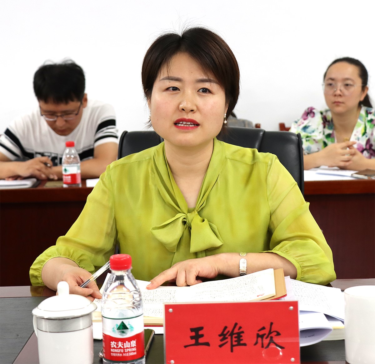 王维欣在发言中说,要学深悟透习近平总书记关于思想政治教育及中国特色社会主义教育方面的系列重要讲话精神,配齐建强学院思政教师队伍,加强思政教师培训培养,提升教师思政能力,严格落实国家关于思政课教师的相关待遇。