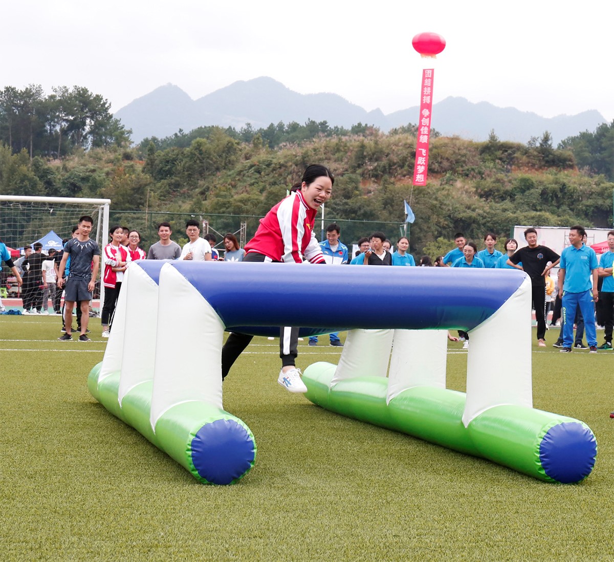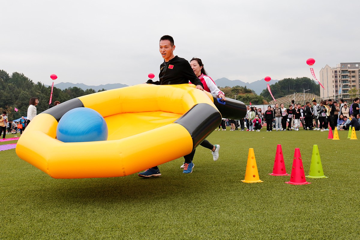 为让此次活动更加丰富精彩,今年学校还增加了八人九足跑、趾压板背人接力、软式跨栏接力比赛、一网向前等教职工趣味赛,让严肃紧张的赛场上不时传来阵阵欢笑。