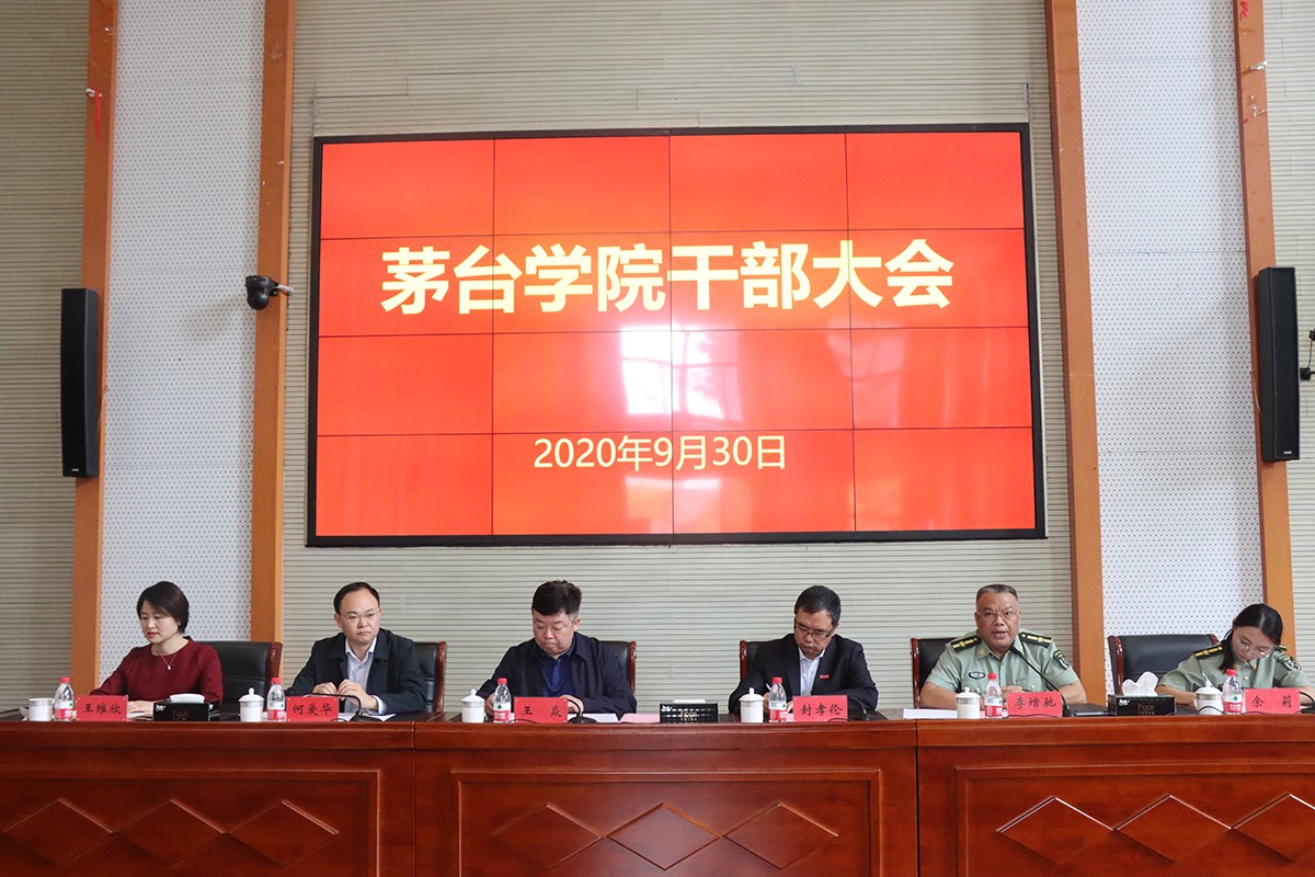 9月30日,beat365正版唯一官网必一在行政楼一楼会议室召开干部动员大会,宣布新增两名党委委员、副院长的任命。茅台集团党委副书记、beat365正版唯一官网必一党委书记王焱,beat365正版唯一官网必一党委副书记、院长封孝伦出席并讲话;茅台集团党委组织部常务副部长何爱华,beat365正版唯一官网必一党委副书记、常务副院长李增驰,党委委员、纪委书记王维欣,党委委员、副院长余莉出席会议。李增驰主持会议。