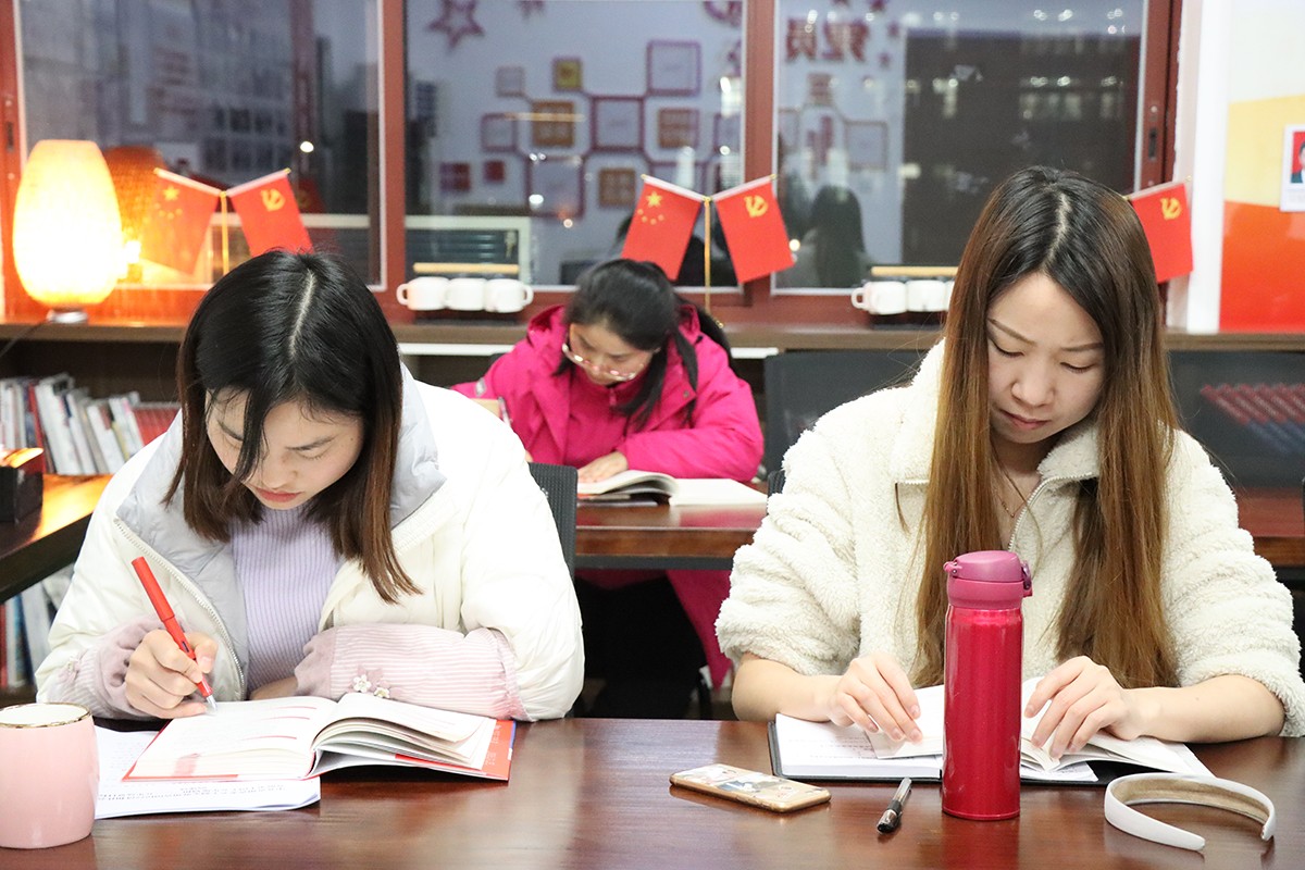 虽已入春,连日来的阴冷让夜幕早早地笼罩在仁怀市南部新城的上空。学生的晚自习还没有结束,路边交织的灯光偶尔落在紧裹大衣匆匆而过的寥寥身影上。beat365正版唯一官网必一行政楼安静地守护在灯火通明的教学楼边上。已近晚八时许,行政工作人员几乎已下班回家,而三楼右侧的一排窗户还透出明亮的光线,这是机关第一党支部的同志们在党员活动室开展晚间阅读活动。