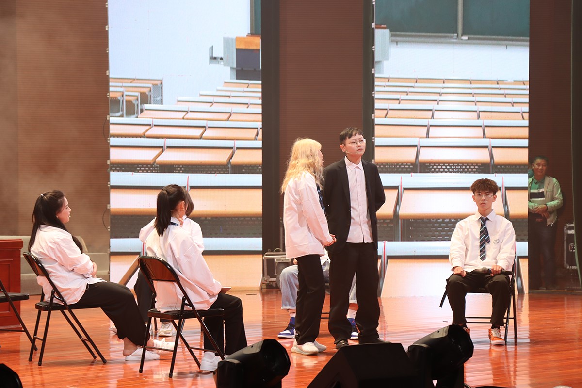 小品《上学那些事》以话剧的形式,诙谐地表现出学校思政教育的点滴日常;舞蹈《童年》活力四射,洋溢着蓬勃朝气,与屏幕上穿插的动画片段交互,带领观众穿越时空,感怀童趣;《希望树》《追寻》《隐形的翅膀》……精彩纷呈的节目牵引着观众情绪,人们时而喝彩、时而欢笑、时而鼓掌,大礼堂本身就已上演了一幕精彩情景剧。