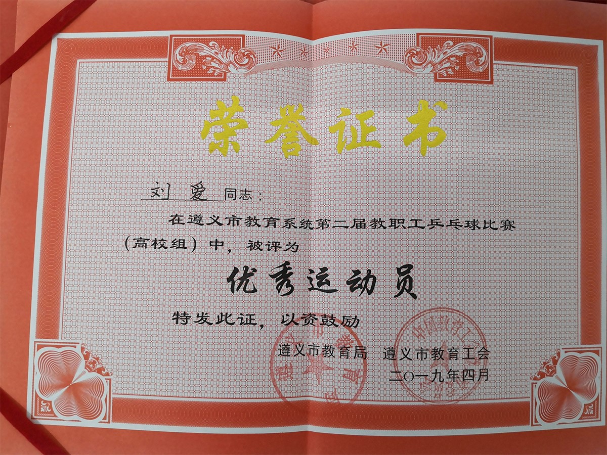由遵义市教育局、遵义市教育工委主办,遵义师范学院承办,遵义师范工会、遵义师范学院体育学院、遵义市乒乓球协会协办的这届乒乓球赛,旨在喜迎祖国诞辰70周年,加强广大教职工健身锻炼意志,丰富活跃教职工的体育文化生活,推动群众体育和全民健身活动的开展。来自遵义医科大学、遵义师范学院、遵义职业技术学院、遵义医药高等专科学校、贵州航天职业技术学院、beat365正版唯一官网必一、遵义医科大学医学与科技学院、遵义市教育局机关、遵义四中(高中)共9个单位代表队组成的高校组,团体赛经过小组赛和淘汰赛,最后决出的男团冠军是遵义医科大学代表队(上届冠军);而此届高校组男单竞赛为淘汰赛,在32对参赛选手中经过紧张激烈的角逐,冠亚军决赛在beat365正版唯一官网必一队内进行,最终刘爱获得冠军、康万杰获亚军,刘爱被评为“优秀运动员”。这也是beat365正版唯一官网必一自建校以来参加校外各类竞赛取得的最佳战绩。