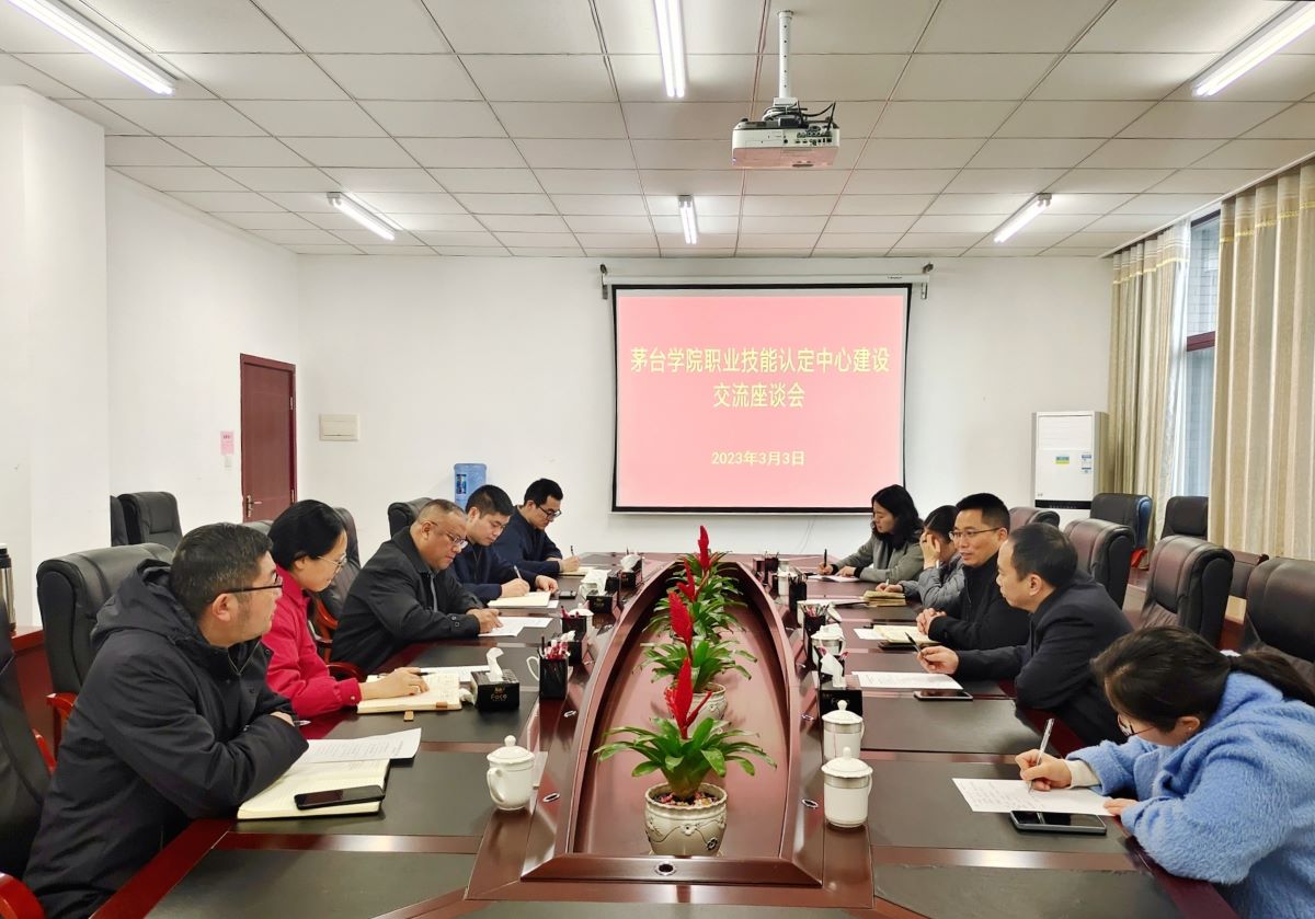 3月3日,贵州省职业技能鉴定考评指导中心主任万远茂、遵义市人社局党组成员、市就业局局长贺孝循、仁怀市人社局副局长肖隽一行到beat365正版唯一官网必一调研职业技能等级认定工作,部署了“贵州酱酒职业技能培训基地”建设任务,学校党委副书记、常务副校长李增驰出席交流座谈会。