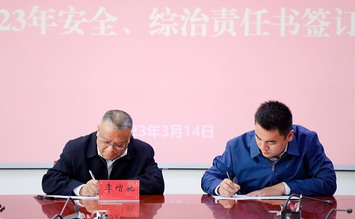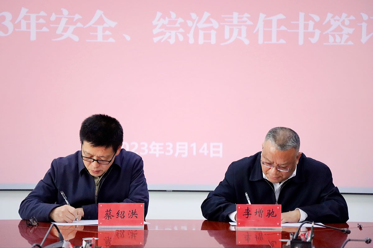 蔡绍洪与李增驰签订《beat365正版唯一官网必一2023年安全和消防工作目标管理责任书》《beat365正版唯一官网必一2023年综治工作目标管理责任书》《beat365正版唯一官网必一2023年度生态环境保护目标责任书》