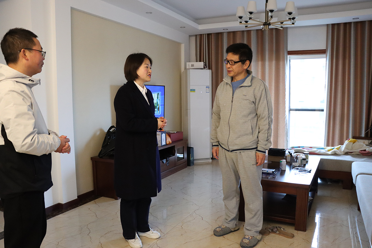王维欣代表学校工会与老专家、老教授们亲热交流、倾听心声,感谢他们在学校教育事业发展中的无私奉献,诚恳听取他们对学校相关工作的意见建议,仔细询问他们身体健康状况和日常生活情况,希望他们继续关心和支持学校工作,发挥余热为学校教育事业发展再作贡献,并为他们送上慰问品。