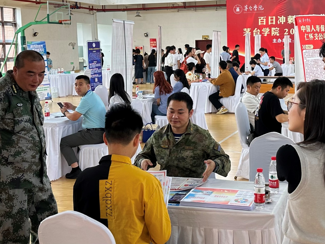 招聘会同时邀请到了仁怀市武装部相关负责人到场,开展征兵入伍宣传工作,为有意向入伍当兵的毕业生现场答疑。