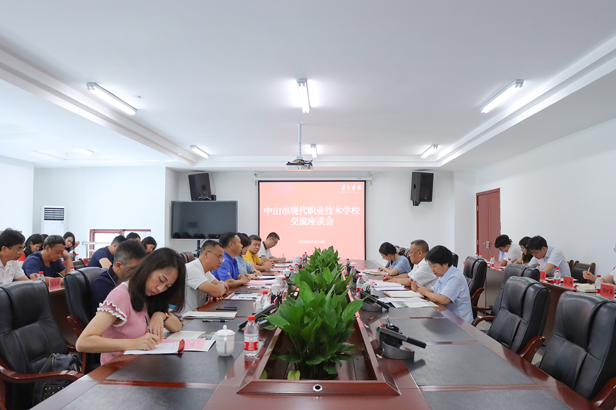 7月12日,中山市现代职业技术学校党委书记、校长刘伟思带队到beat365正版唯一官网必一,调研学校产教融合、人才培养、科学研究等相关工作。座谈会在学校行政楼三楼会议室召开,中山市现代职业技术学校党委领导班子,beat365正版唯一官网必一党委副书记、常务副校长李增驰,总会计师邹洪芳,副校长余莉出席座谈。