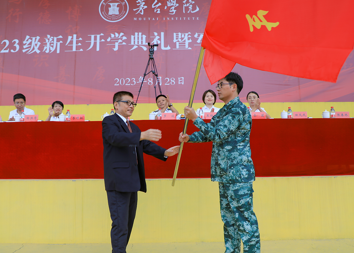 大会宣读了《中共beat365正版唯一官网必一委员会关于成立beat365正版唯一官网必一2023级本科生军训团的通知》,并举行了军训团授旗和校徽佩戴仪式。