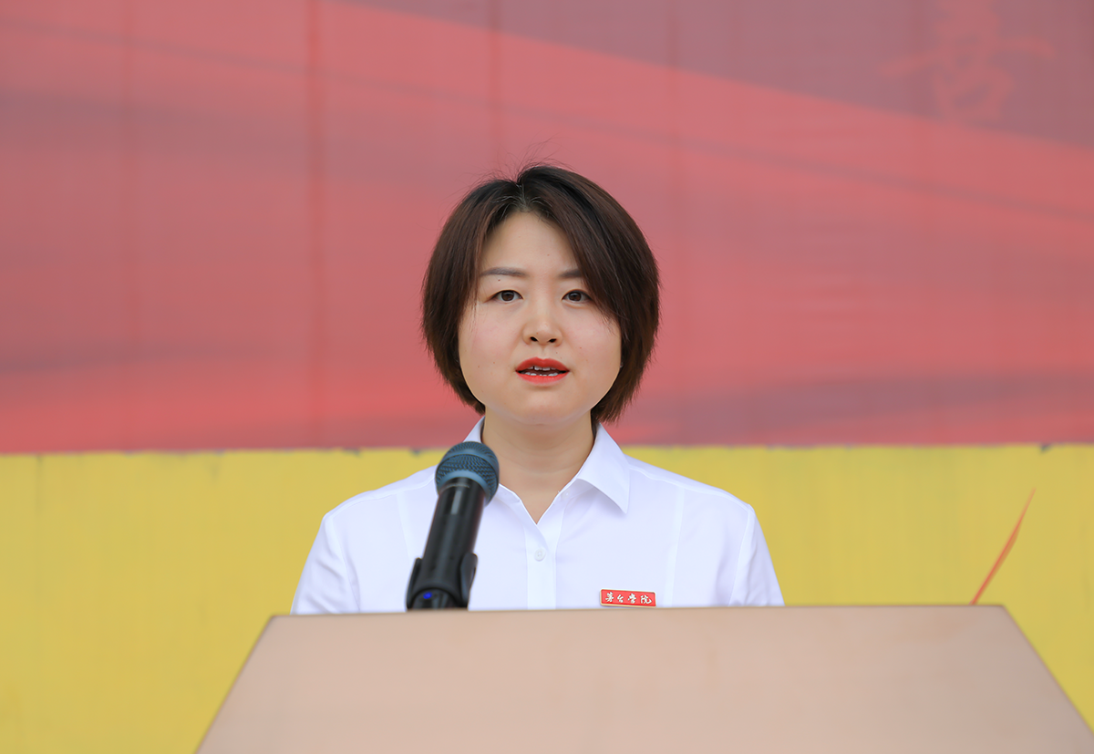 beat365正版唯一官网必一党委副书记、工会主席王维欣宣读《中共beat365正版唯一官网必一委员会关于成立beat365正版唯一官网必一2023级本科生军训团的通知》