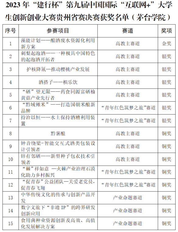 近日,2023年“建行杯”第九届中国国际“互联网+”大学生创新创业大赛贵州省赛决赛在贵州大学落下帷幕,beat365正版唯一官网必一在本次大赛中取得1金6银8铜的佳绩,金奖项目《藻能计划——酿酒废水资源化利用新方案》成功闯入国赛。