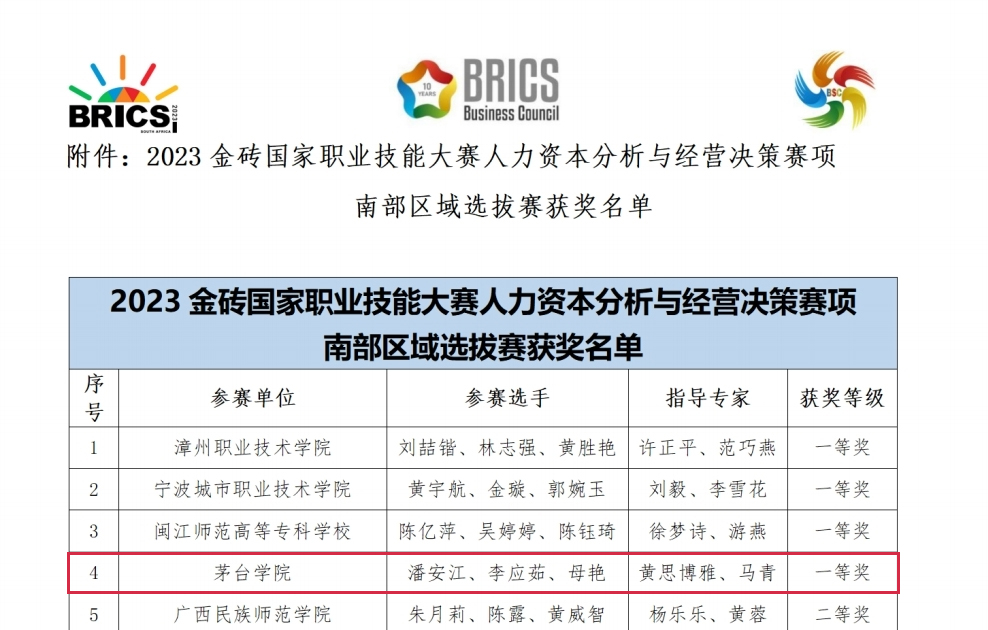 近日,由南非高等教育与培训部、金砖国家工商理事会、南非豪登省政府主办的2023年金砖国家职业技能大赛人力资本分析与经营决策竞赛南部区域选拔赛圆满结束。beat365正版唯一官网必一代表队以南部地区一等奖成绩成功晋级国赛!