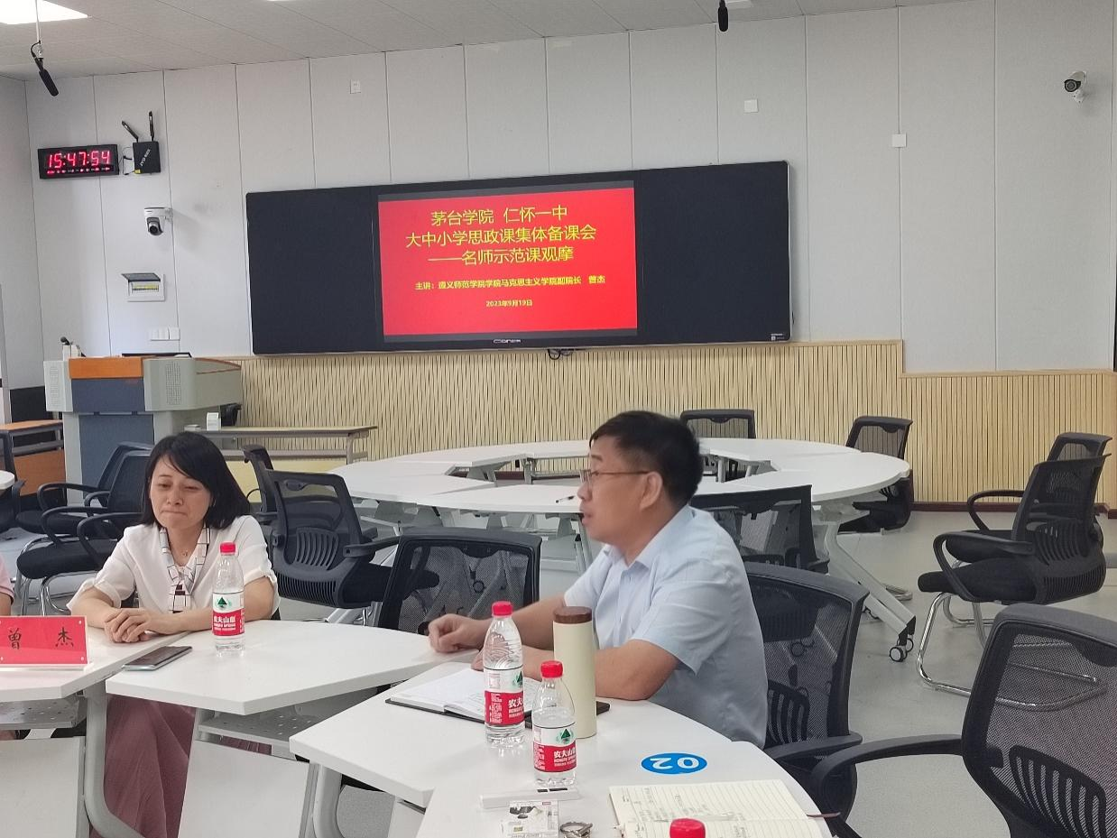 为提升学校思政课教师教学能力和水平,进一步推进大中小学一体化教学提质增效,9月19日,beat365正版唯一官网必一马克思主义学院邀请仁怀市第一中学思政课教师代表到校,在留芳楼202教室共同观摩遵义师范学院马克思主义学院副院长、贵州省第四批高校思想政治理论课教学名师曾杰教授的示范课,并开展了教学研讨。