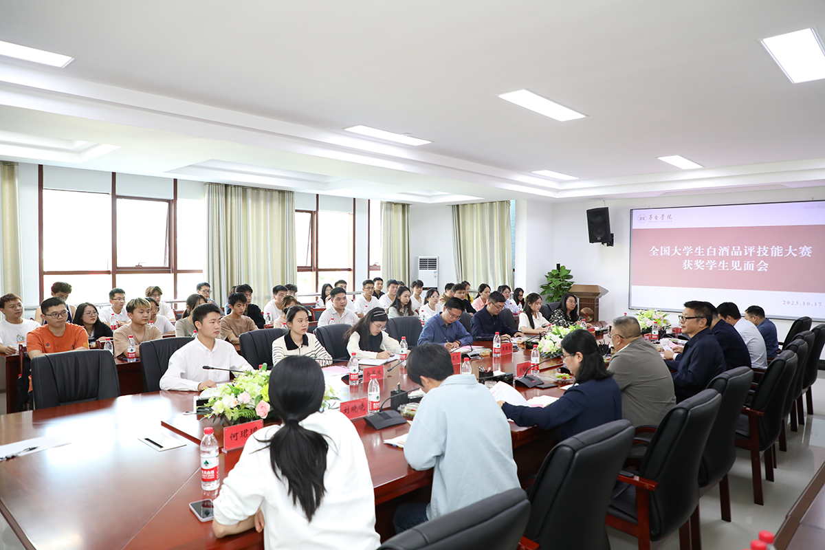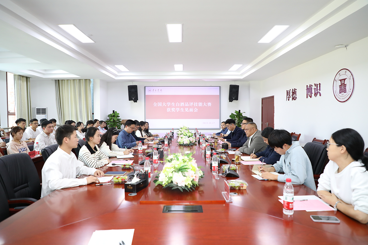 近日,beat365正版唯一官网必一学子在“汉酱杯”全国大学生白酒品评技能大赛中斩获佳绩、载誉归来。为进一步发扬勤奋学习、刻苦钻研的精神,引导更多青年学子汲取榜样力量,10月17日,学校在行政楼二楼会议室召开全国大学生白酒品评技能大赛获奖学生见面会,激励广大青年学子向身边优秀学习、看齐,不断砥砺奋进、勇毅前行,形成比学赶超、争优创先浓厚学习氛围。校长蔡绍洪,党委副书记、常务副校长李增驰,纪委书记田儒慧,副校长张春林出席会议。