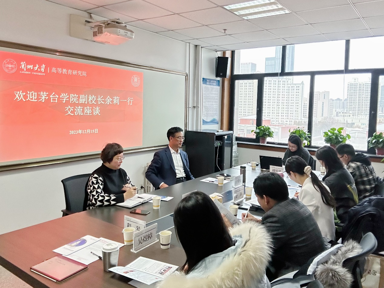 在兰州大学高等教育研究院座谈会上,研究院党委书记赵春晖、副院长卢彩晨就如何筹建和运行高等教育研究中心进行了经验分享。