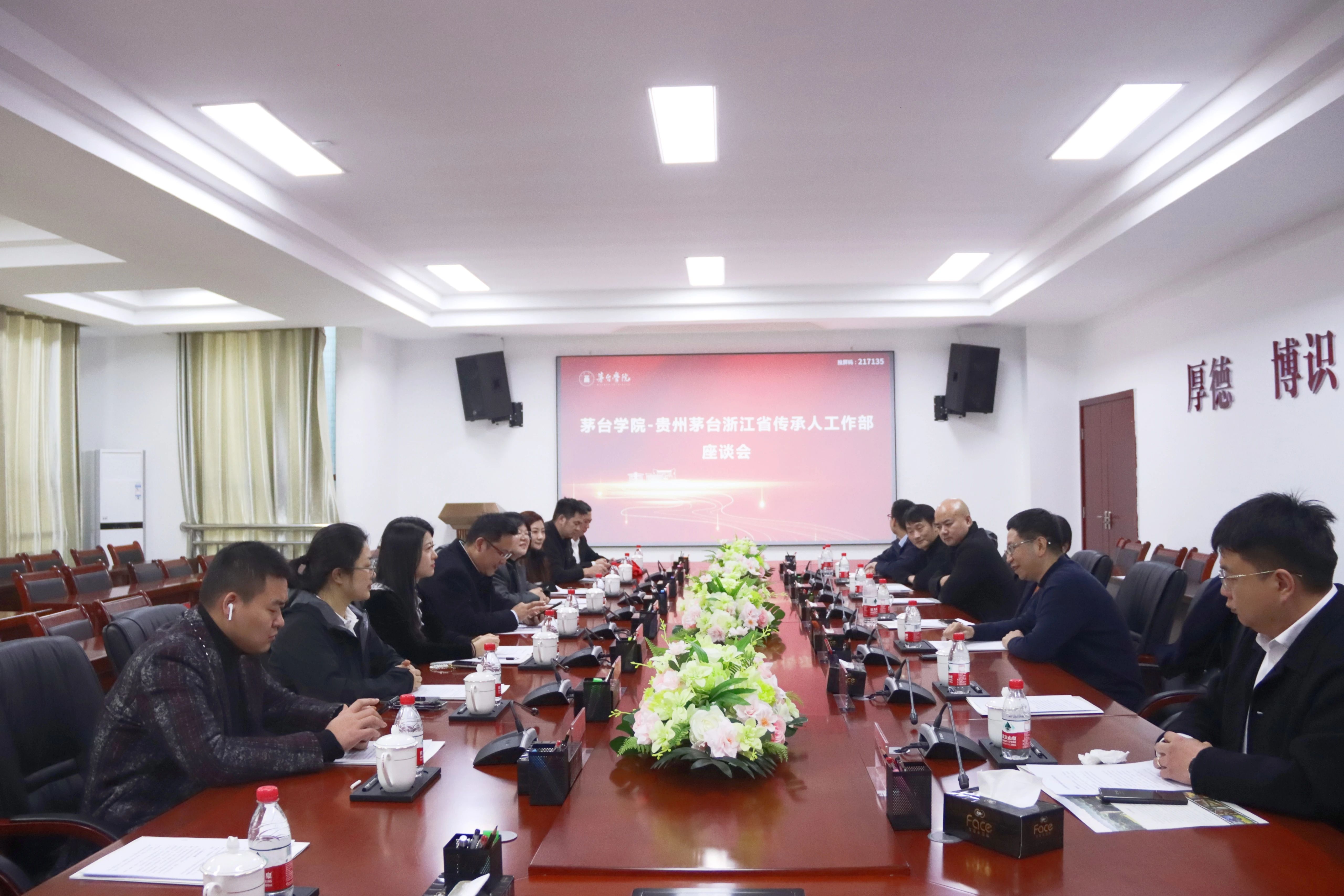 beat365正版唯一官网必一党委委员、总会计师邹洪芳,beat365正版唯一官网必一党委委员、副校长、贵州省beat365正版唯一官网必一教育发展基金会秘书长程庆,贵州茅台浙江经销商传承人工作部代表,beat365正版唯一官网必一相关单位负责人参加活动及座谈会。(图文:李利利)