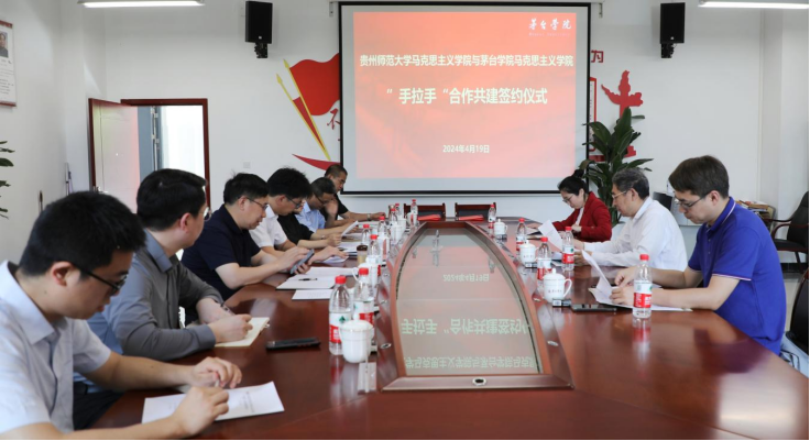 4月19日,贵州师范大学马克思主义学院与beat365正版唯一官网必一马克思主义学院“手拉手”合作共建签约仪式在beat365正版唯一官网必一留芳楼118会议室举行。贵州师范大学马克思主义学院院长李俊奎,beat365正版唯一官网必一副校长张春林、马克思主义学院院长吴纪纲、副院长李莎莎出席此次签约仪式。