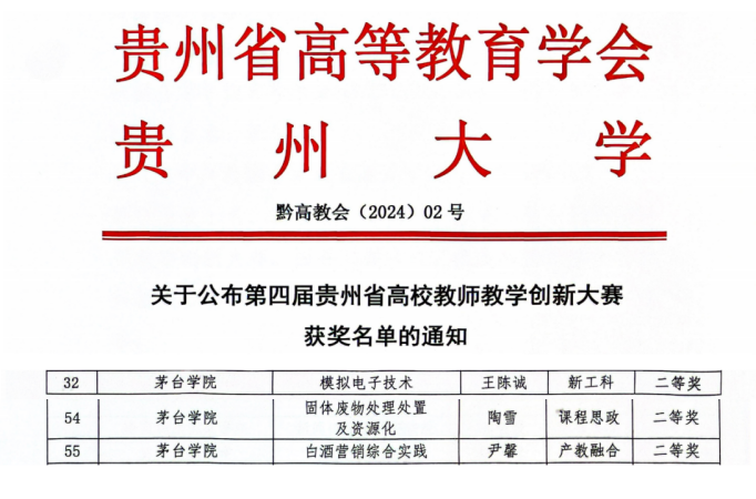 4月18日,第四届贵州省教师教学创新大赛获奖名单公布,学校获二等奖3项。