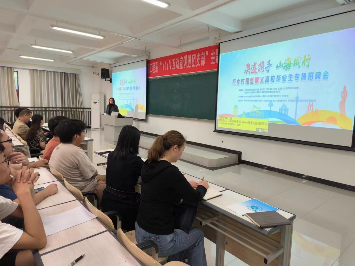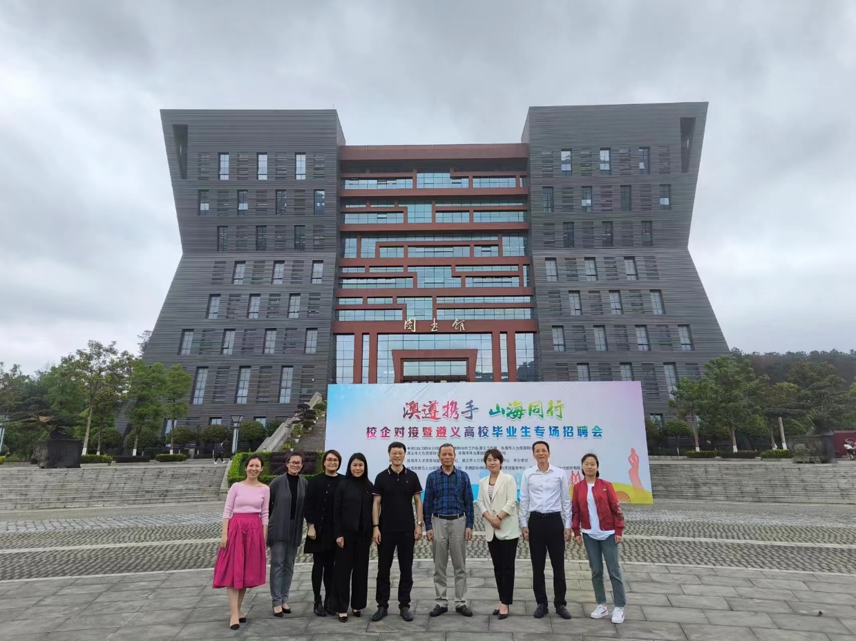 4月18日,粤黔协作工作队遵义市工作组成员、遵义市就业局副局长钟智,仁怀市人社局副局长王燕与澳门、珠海等地多家企业相关负责人到beat365正版唯一官网必一开展引才招聘活动。