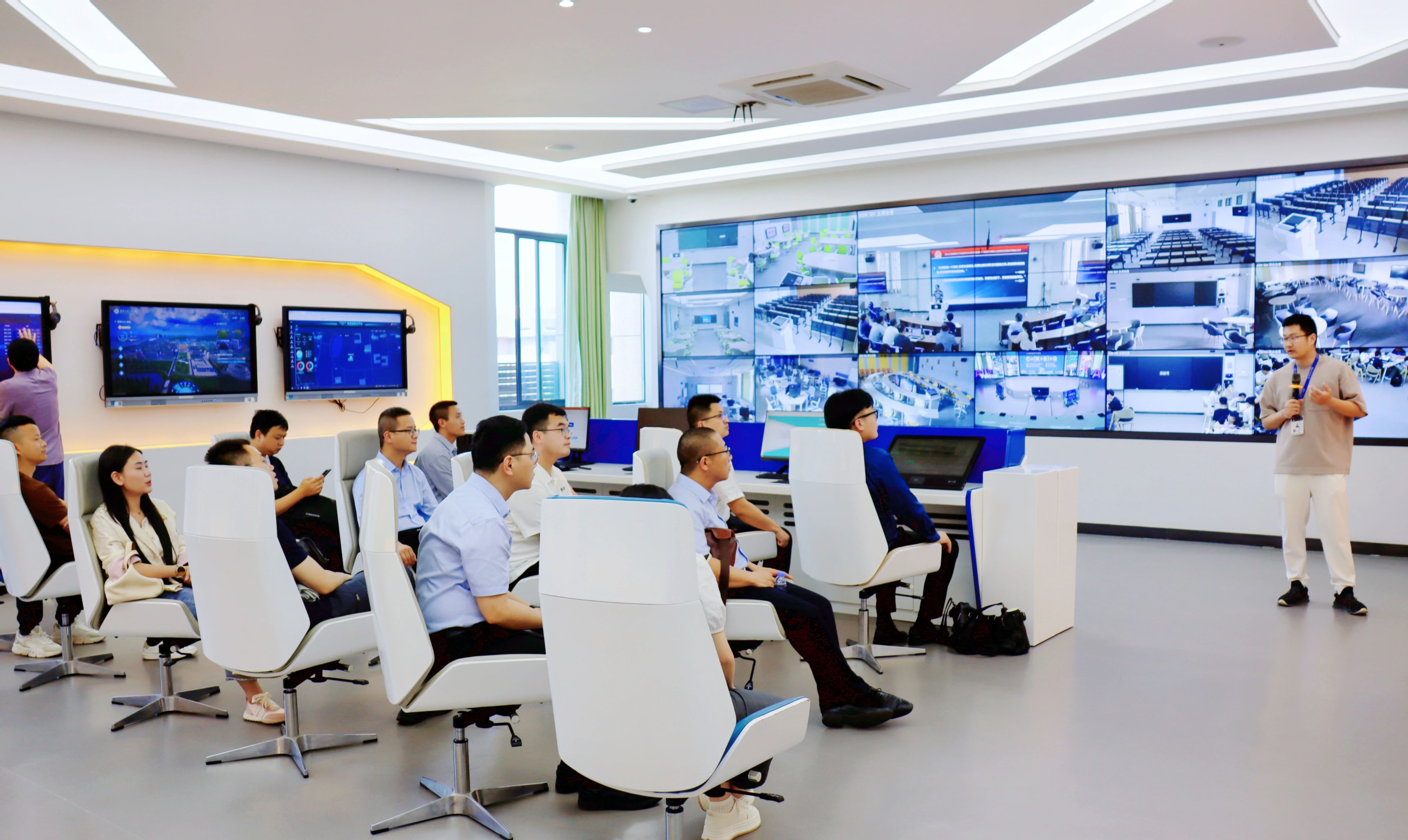 5月18日,调研组前往科大讯飞股份有限公司合肥总部,围绕平台建设、产学研合作等领域的先进经验和技术开展调研交流。科大讯飞教育BG副总裁陈红斌、产教融合业务实验室产品部总经理陈琦及产教融合业务相关负责人陪同参观了智能展厅。随后双方进行座谈交流。