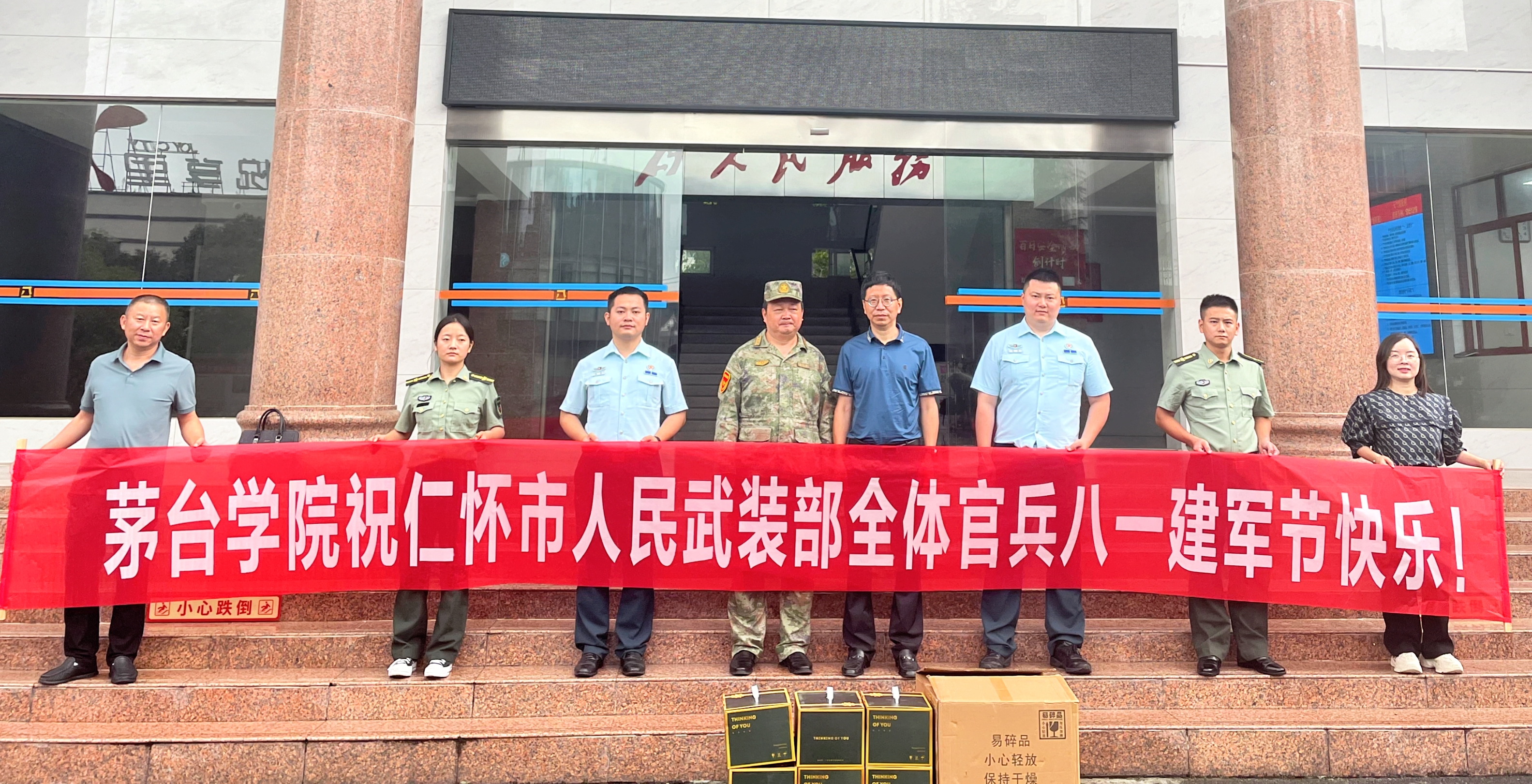 在仁怀市人民武装部,程庆向全体官兵致以诚挚的节日问候和祝福,感谢武装部对学校大学生征兵、新生军事训练等工作的关心指导,并送上了节日慰问品。