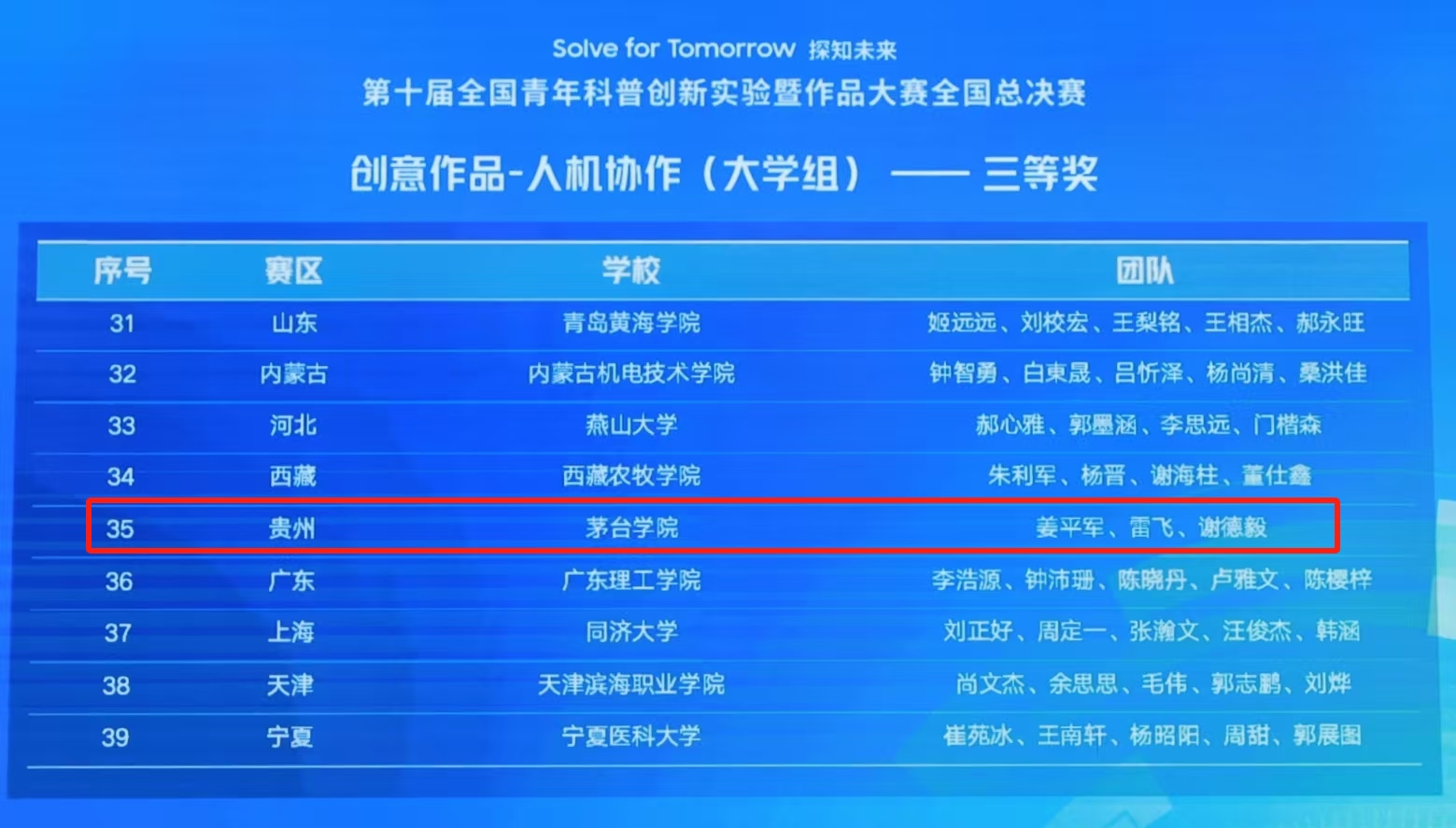 beat365学子在本届大赛报名参加创意作品-人机协作(大学组),经层层选拔,以贵州赛区一等奖名次入围全国总决赛,并在总决赛中与全国266支队伍、1200余人角逐,最终斩获全国三等奖。
