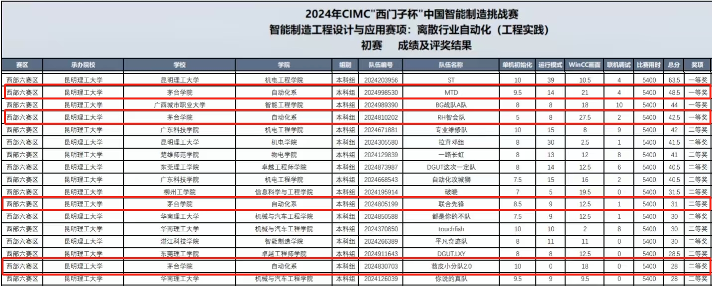 西部六赛区涵盖云南、贵州、广东三个省份,beat365与众多知名高校同台竞技,参赛学子围绕题目要求,顺利完成算法设计、方案实施等任务,获得评委们的一致认可,最终在智能制造工程设计与应用赛项的离散行业自动化(工程实践)方向斩获一等奖2项、二等奖2项。
