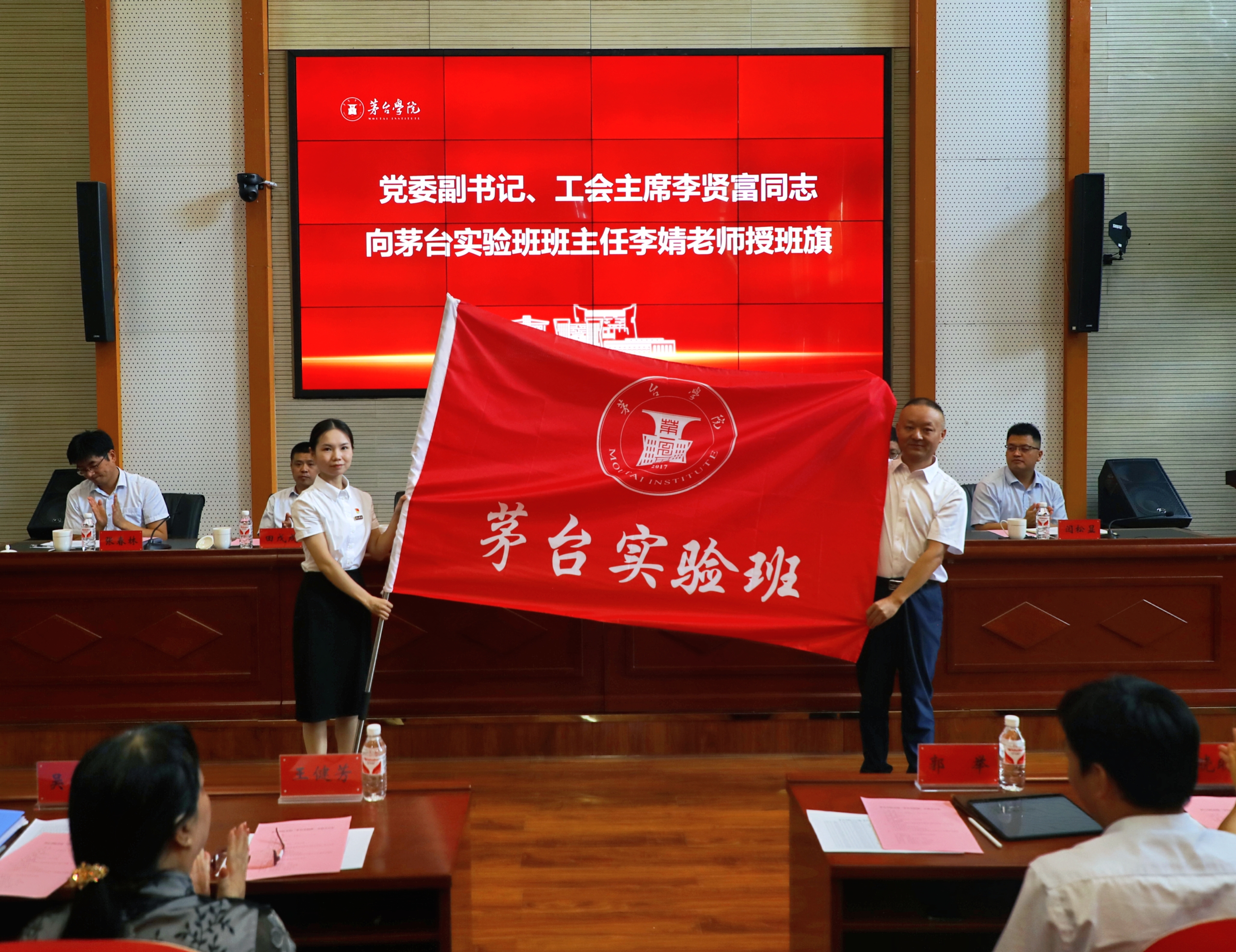 开班式宣读了《beat365正版唯一官网必一“茅台实验班”工作实施方案》,举行了授班旗仪式。任课教师代表、新生代表发言。
