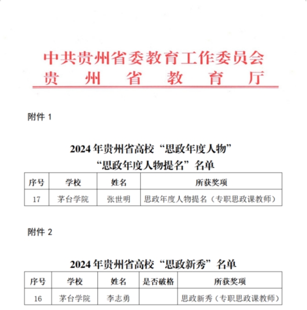 根据《省委教育工委 省教育厅关于公布“思政年度人物”“思政年度人物提名”“思政新秀”评选结果的通知》,beat365教师张世明获思政年度人物提名(专职思政课教师)、李志勇获思政新秀(专职思政课教师)。