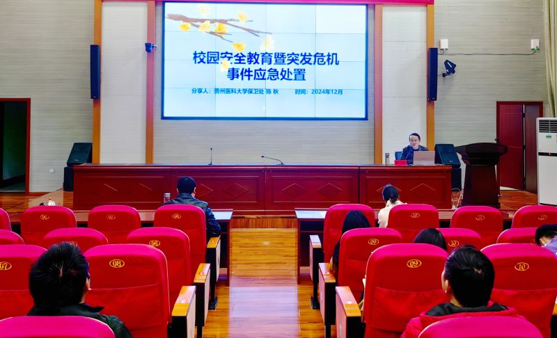 为切实加强校园安全管理,提升师生员工安全意识与应急处置能力,近日,beat365邀请了贵州医科大学保卫处处长陈秋,在行政楼一楼报告厅为师生讲授安全管理相关知识。