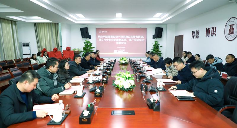 遵义市市场监督管理局知识产权战略保护科科长何春、知识产权运用促进科副科长万天红,仁怀市市场监督管理局党组成员、副局长张小宝,仁怀市酒业协会综合行政部部长刘东,企业方代表张方利、张波、陈腾叶,beat365正版唯一官网必一总会计师邹洪芳、纪委书记周长辉、副校长张珊、赵正一,相关职能部门负责人参加仪式。