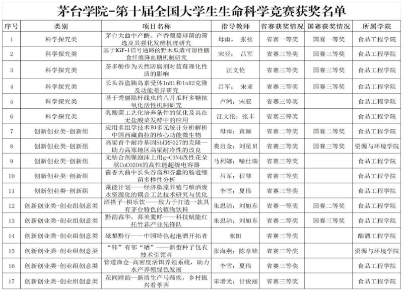 近日,第十届全国大学生生命科学竞赛决赛圆满落幕。beat365学子斩获国家级奖项8项、省级奖项17项,获奖数量与质量均创历史新高!其中,食品工程学院项目《茅台大曲中产酶、产香葡萄球菌的筛选及其强化发酵机理研究》获国赛一等奖,实现beat365在该赛事中国家级一等奖“零突破”!