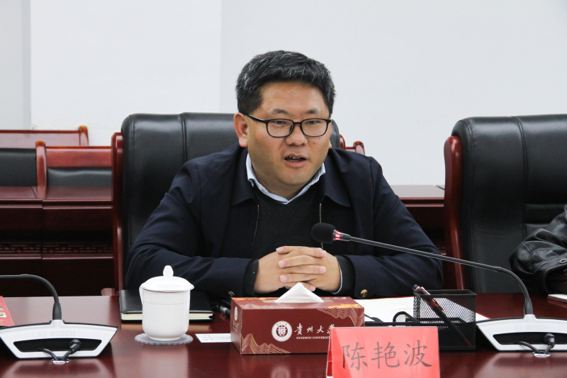 会上,陈艳波介绍了贵州大学的办学历史、师资力量、人才储备及学科建设情况。他表示,学校坚持以立德树人为根本,以学科建设为龙头,建设了多个重点实验室服务贵州特色产业。他希望双方开展合作,明确合作方向与落实路径,进一步加强贵州大学特色学科与产业建设,提升服务贵州的能力。