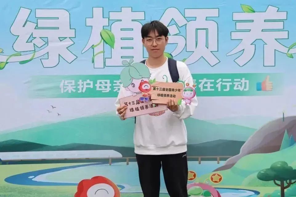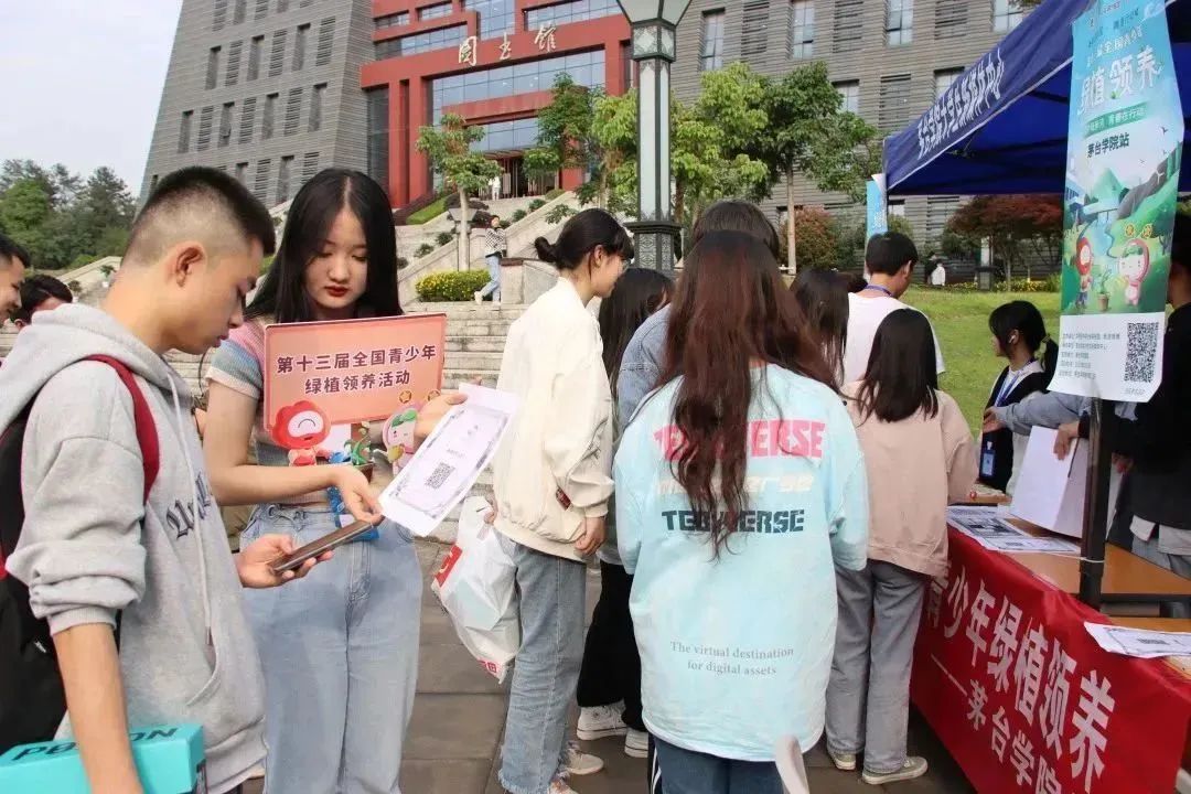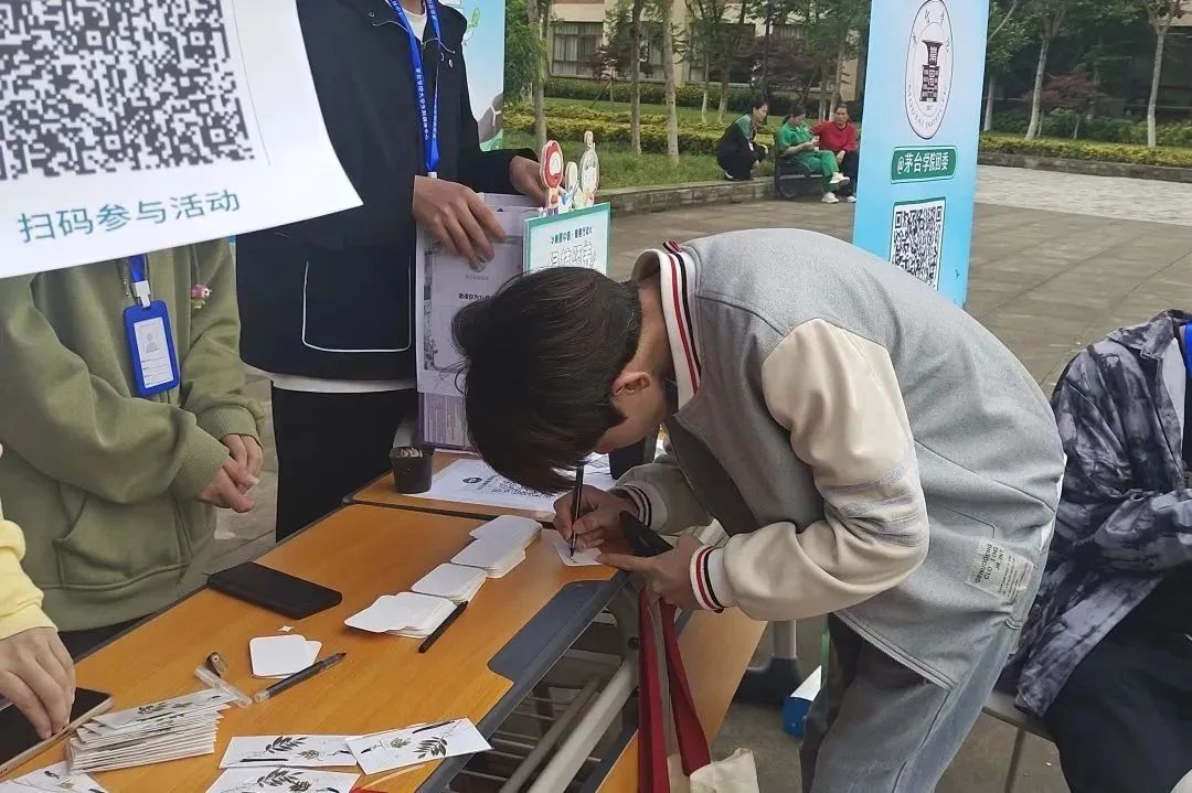 获得奖品后,同学们在卡片上留下属于自己的绿色宣言,与活动展板合影留念,活动现场充满欢声笑。