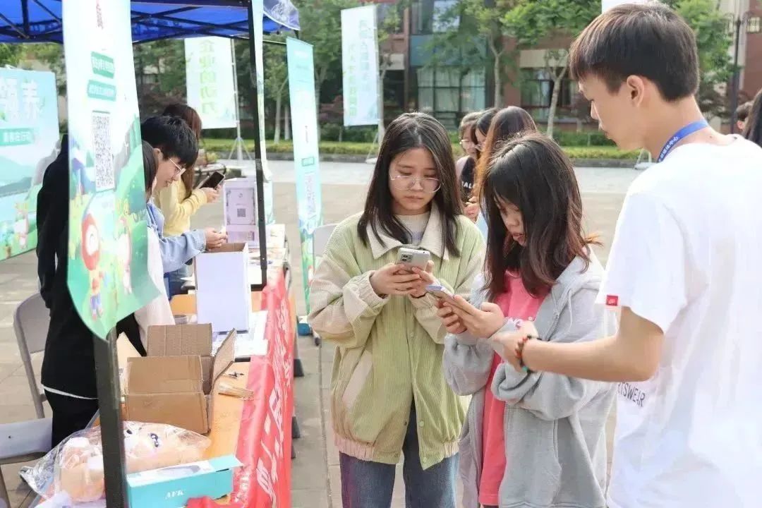 工作人员满怀热情,组织同学们用微博扫码获得抽奖机会的方式积极参与线上“我为母校种棵树”活动。