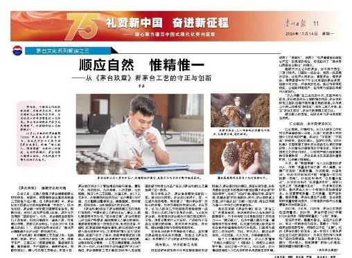 此次发布的《茅台玖章》有关“茅台工艺”的最新表述,深刻表明茅台人在长期的实践摸索中,于中华传统文化根祗找到了共同信念——“顺天敬人”,包含中国人顺应大道、遵循规律的哲学思想,以及建立和谐人际关系和社会秩序的道德准则和行为规范。以敬畏与感恩之心对待自然、文化、时代与人,顺应自然法则,守正创新,久久为功,方能香飘世界。