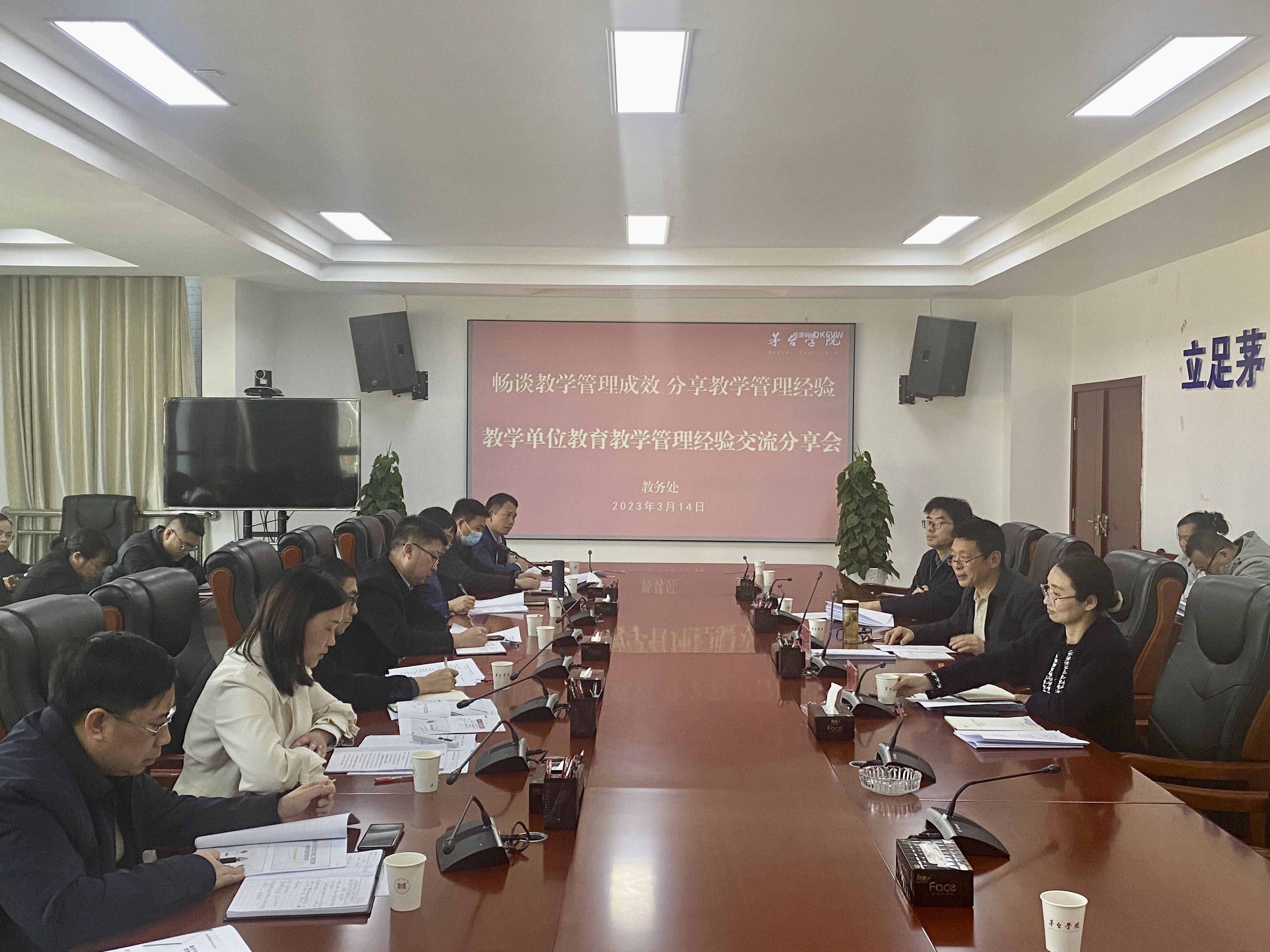 为全面推进日常工作与评建工作的深度融合,有效交流各教学单位在教学改革实践过程中探索和积累的宝贵经验,集思广益,加强沟通,形成信息共享、互通,相互取长补短,促成学校上下形成教学管理经验大讨论、大学习,以良好的精神风貌迎评促建的工作氛围。2023年3月14日下午14:00,教务处组织开展了主题为“畅谈教学管理成效、分享教学管理经验”的各教学单位教育教学管理经验交流分享会,beat365正版唯一官网必一校长蔡绍洪、副校长余莉,各教学单位主任、副主任、教研室主任、实验室主任和教务处相关人员参加了会议。